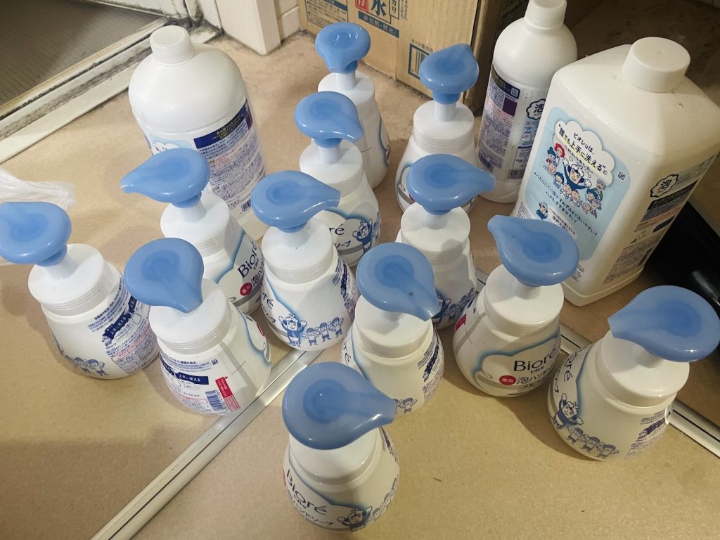 並んで待機中。手洗い戦隊 ブルーポンプ