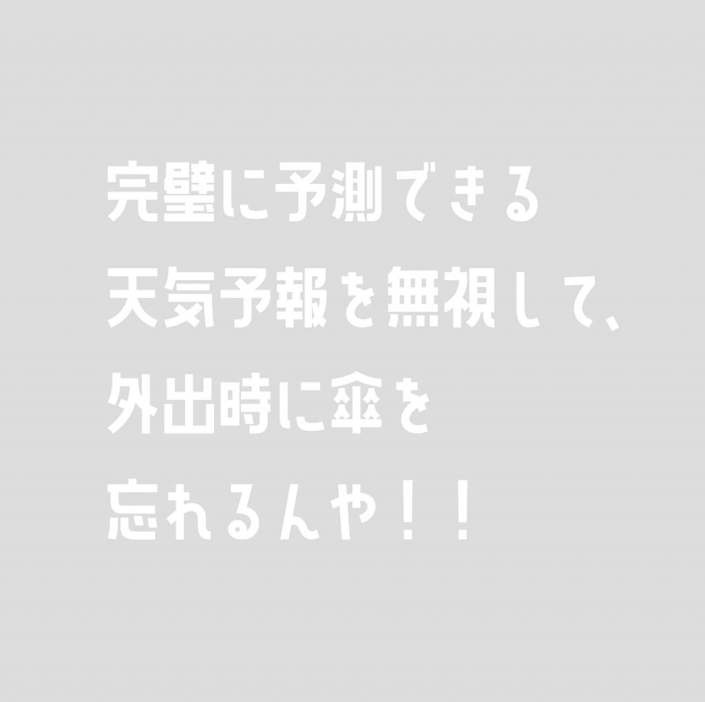 完璧に予測できる天気予報を無視して、外出時に傘を忘れるんや!!