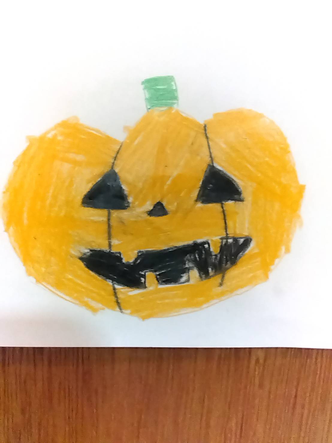 ハロウィンの日に子供たちのリクエストでジャック・オー・ランタンを作った妻。