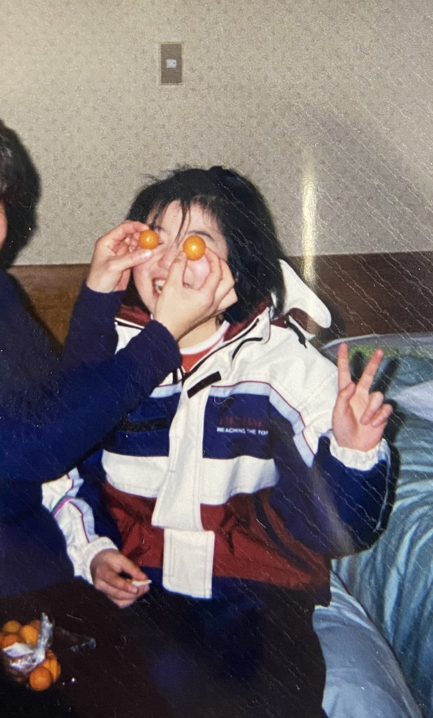 昔、家族でスキー旅行に行ったとき、父が写真を撮ろうとしたところ、母が「ダダン・ダン・ダダン!ダダン・ダン・ダダン!」と突如言いながら、オレンジ色の金柑の実を持って近づいてきた。当時、流行していたターミネーターに影響されていた母は、私の両目に金柑をセットして、「はい!撮って!撮って!」と嬉しそう。(笑) なぜ、今!?!(笑) ターミネーターの骨格?に見立てられ、赤い目をしてにっこりピースをした遠い冬の思い出です。