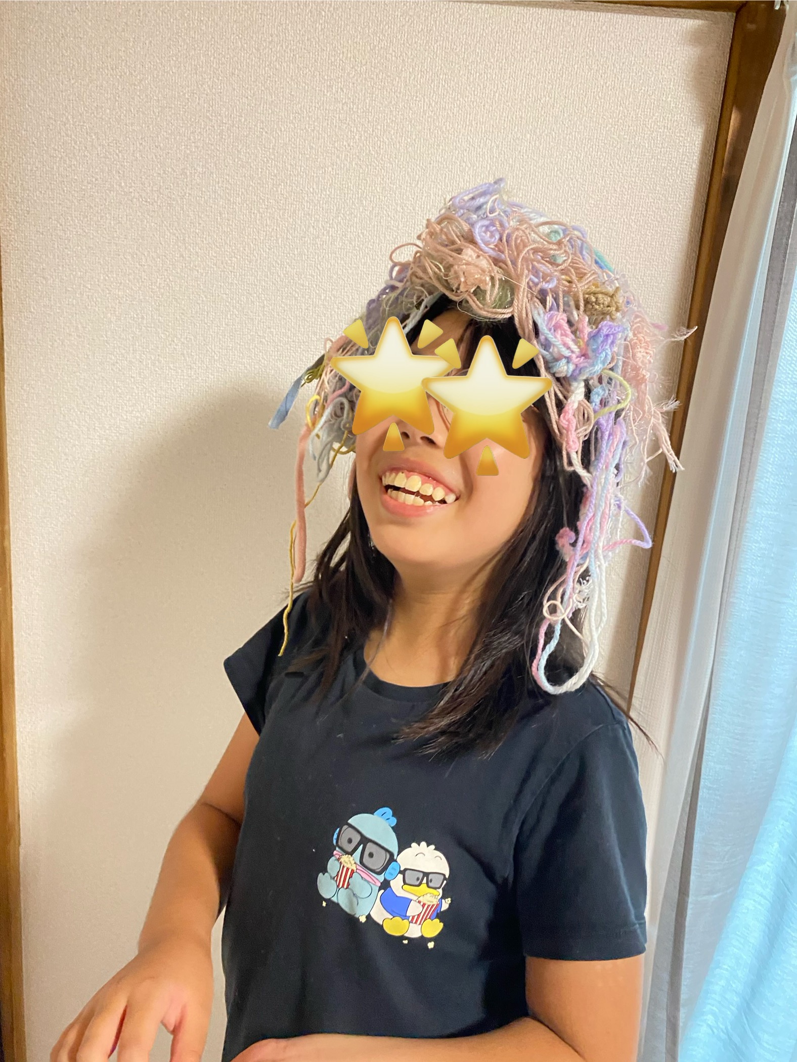 その後もカラフルアフロを被り、ニヤニヤしながら、宿題もやらずに新しい作品とアフロを増やしておられるのか様であった。