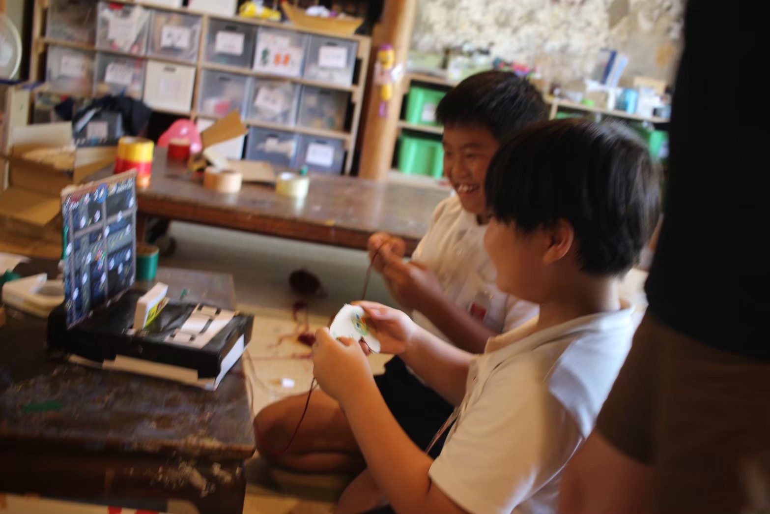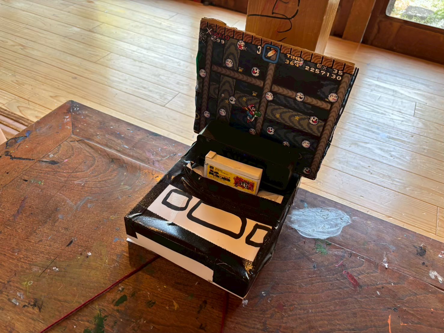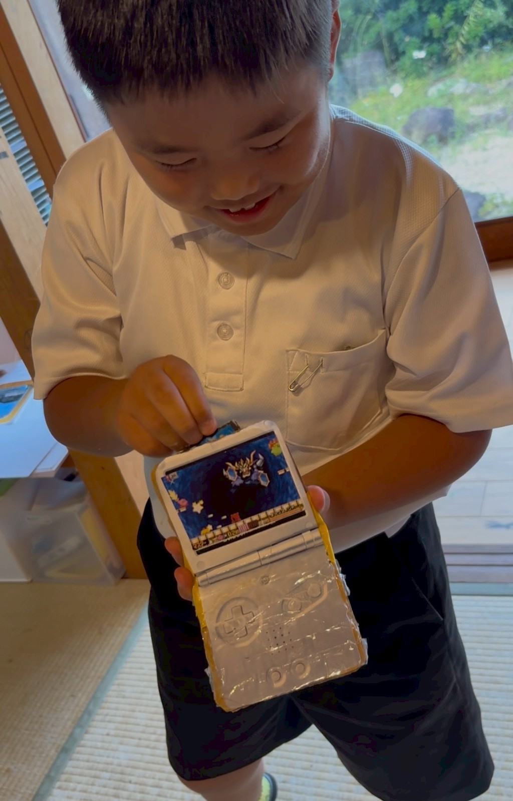 その後、3DS、ゲームボーイアドバンスなど次々に新作を作り、みんなで遊べるファミコンも作り出した。動かない画面とペラペラのコントローラー、なぜか唯一厚みのあるカセット。ゲームに合わせて音楽を流すと他の子も集まってきて、みんなで対戦プレイが始まっていた。そんな様子を見て、「想像力がつく遊びやん!みんなでやったらええやん」と嬉しそうなYくん。