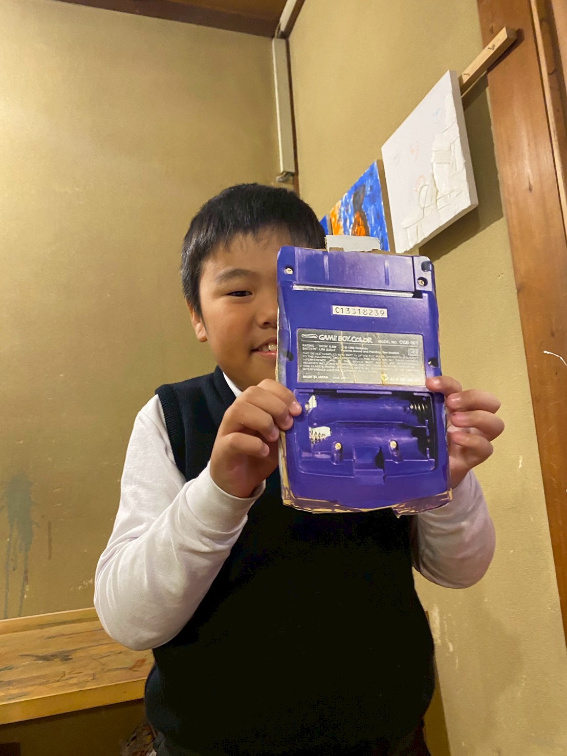 この前はゲームボーイカラーを作っており、カセットや、カセットを入れるところ、裏面まで作り込んでいたのに、まさかの裏面の画像は電池が入っておらず、それ動くの?!とみんなにツッコまれていた。Yくん曰く、「頭の中で動くからいいんよ」とのこと。