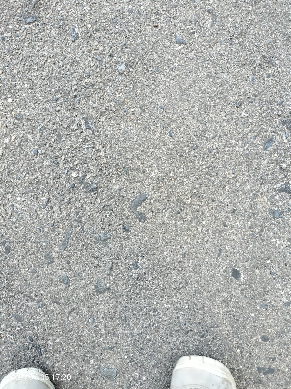 くつのこと?と思ったら、コンクリートに混ざった石?が「く」に見えることに気づく。確かに「く」だ!